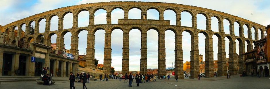 В испанском городе Сеговия расположен древнеримский акведук, который все еще служит людям по своему прямому назначению, то есть доставляет воду в город.