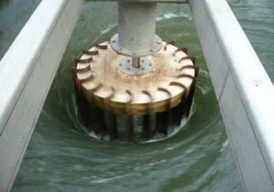 Пропеллер. Это имеющий вертикальный ротор подводный «ветряк», который в отличие от воздушного, имеет лопасти минимальной ширины всего в 2 см. Такая ширина обеспечивает минимальное сопротивление и максимальную скорость вращения и выбиралась для наиболее часто встречающейся скорости потока — 0.8-2 метра в секунду.