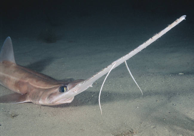 Этот обитатель Мирового океана выделяется среди прочих тем, что на голове у него есть костяной нарост с зазубринами, действительно напоминающий пилу и составляющий приблизительно четвертую часть от общей длины тела.