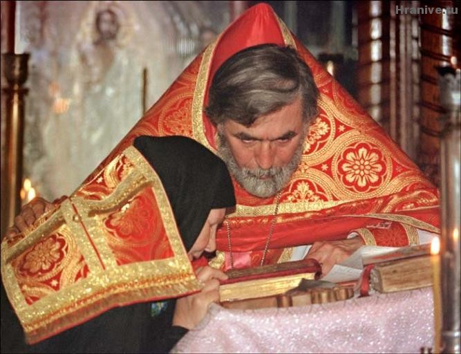 Перед тем, как каяться в грехах, необходимо подойти к нему и положить на Евангелие два пальца. После этого священник уже может положить на голову епитрахиль. Внешним видом он несколько напоминает шарф.