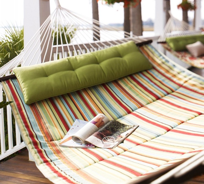 Гамаки обрели популярность благодаря своему удобству и функциональности. На подвесных кроватях хорошо отдыхать в тени деревьев, здесь можно почитать книгу, укачать ребенка и даже поспать.