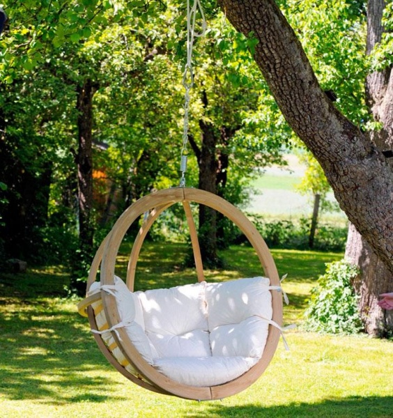 Кресло, подвешенное на дерево или на металлический каркас, стало популярным сравнительно недавно. Сегодня такие качели яйцо, корзину или кокон, плетенные из ротанга, ивы или полимерного материала, можно встретить в зонах отдыха, в садах загородных домов и дач.