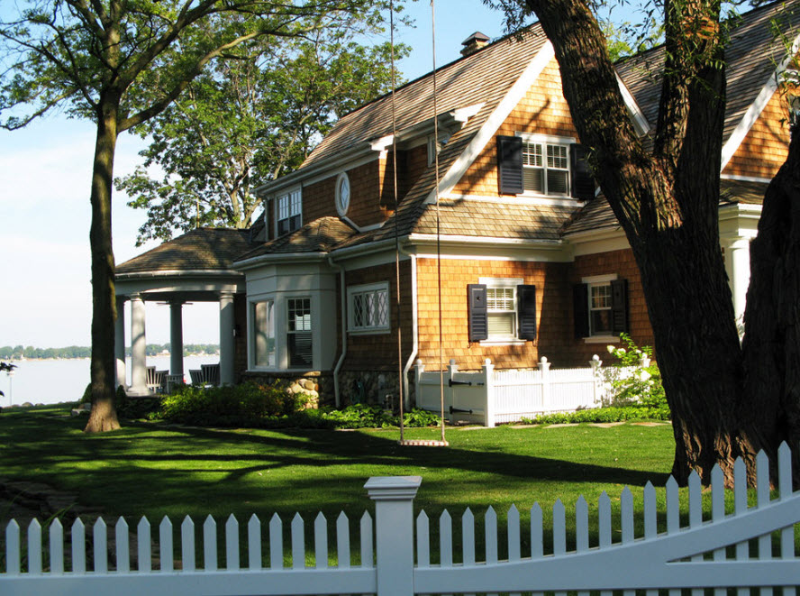 Если ваш загородный дом расположен недалеко от водоема, то, скорее всего он стоит на сваях. В некоторых случаях, полы дома располагаются достаточно высоко над уровнем земли и этого расстояния достаточно для подвешивания небольших качелей.