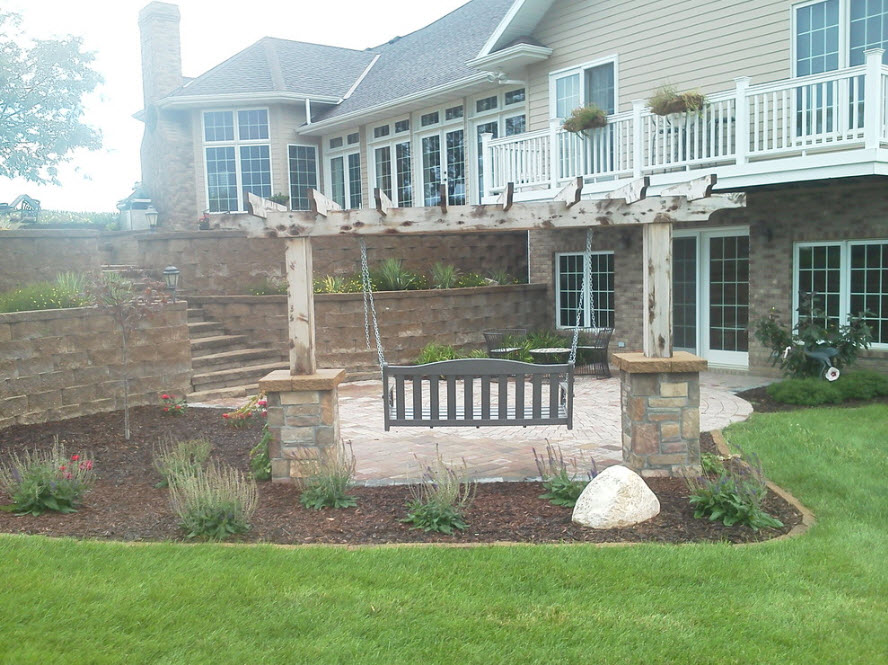 Отдельно стоящие качели, не требующие дополнительных опор, теоретически можно установить в любое удобное для хозяев участка место. Но такой подход возможен только в теории, на практике же необходимо будет определиться кто и с какой целью будет пользоваться качелями. Если на дачных качелях преимущественно будут качаться дети, то установка изделия на заасфальтированную или вымощенную камнем (кирпичом) площадку – не лучший вариант с точки зрения безопасности на случай возможных падений. Если на качелях будут сидеть взрослые люди (и чаще всего не в одиночестве), т.е. вес конструкции с пользователями «на борту» будут существенно больше, то лучше прибегнуть к установке на твердую поверхность. Оседания ножек качелей в грунт не избежать, поэтому площадка патио, вымощенная тем или иным материалом (от камня до дерева) станет наилучшим вариантом.