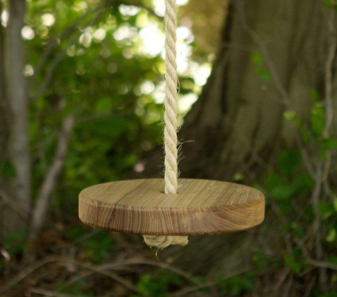 Конструкция самих подвесных качелей может быть абсолютно любой. Вы можете сделать мягкое сиденье из ткани и подушек (оно недолговечно, боится плохой погоды, зато уютно и комфортно), найти применение заброшенному старому скейту (его доска очень прочная) или ярко раскрасить и повесить старые покрышки.
