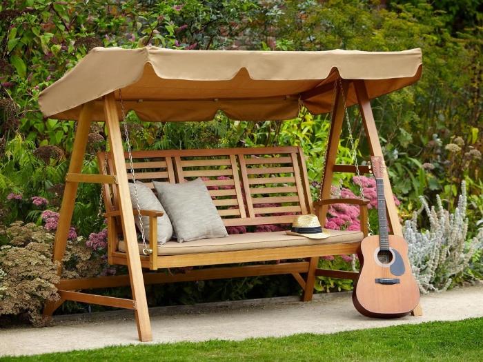 Древесина отличается множеством положительных свойств, которые обеспечивают ее успешную эксплуатацию в разных условиях. Это позволяет сделать деревянные качели для дачи не только удобными и красивыми.