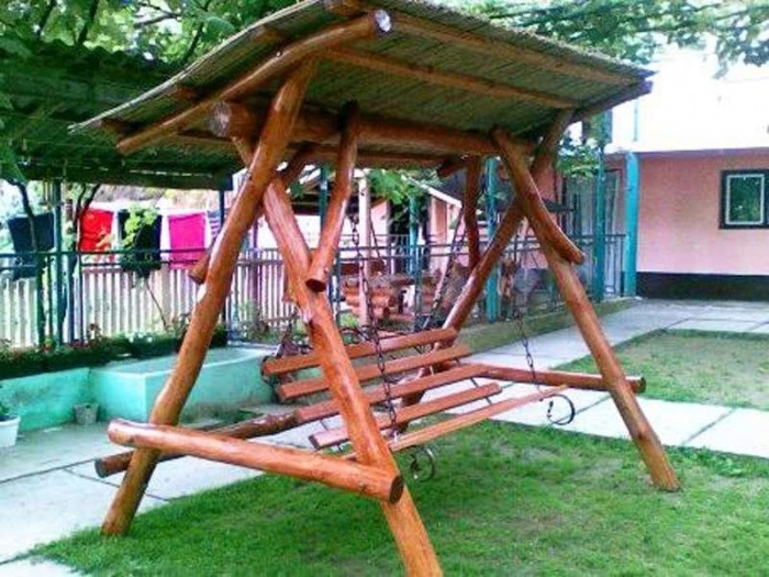 Если вы являетесь счастливым обладателем русского деревянного дома, возведенного из бруса, обязательно оцените качели в рустикальном стиле. Свои авторские модели предлагает компания GardenLand.ro стоимостью около 900 евро. Подобный садовый декор изготавливается в России семейной мастерской Eclectichome.ru с использованием природных материалов.