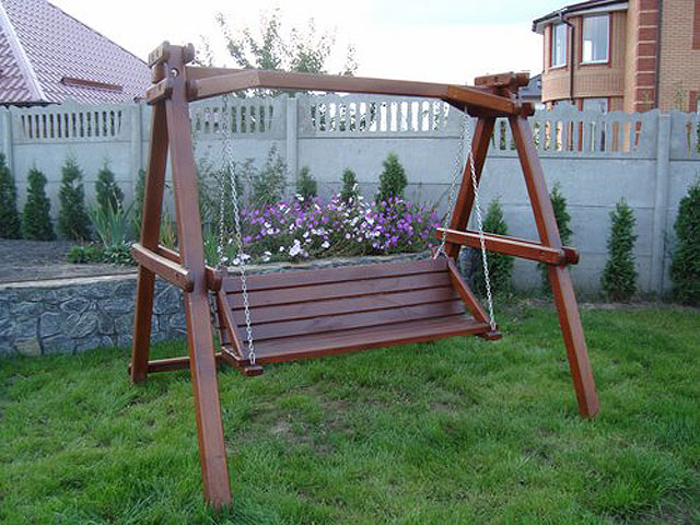 Качели из дерева имеют множество видов конструкции. Следует рассмотреть каждый из них подробнее: