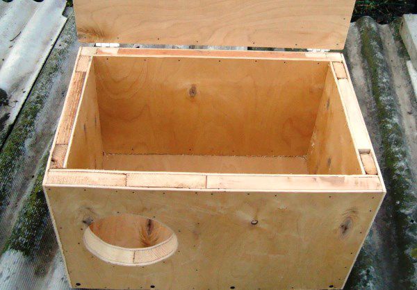 - В просторные клетки ставится куб из досок подходящего размера, в котором сделано отверстие для прохода.