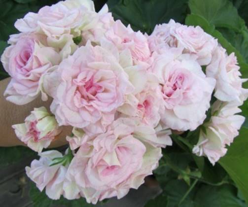 Зональные пеларгонии имеют листья с характерным, отличающимся по цвету, зональным рисунком. Цветки собраны в большие зонтиковидные соцветия, которые могут закладываться по всей длине побега, за счет чего происходит длительное цветение. При наличии достаточного тепла и света цвести такие сорта могут круглый год начиная с марта.
