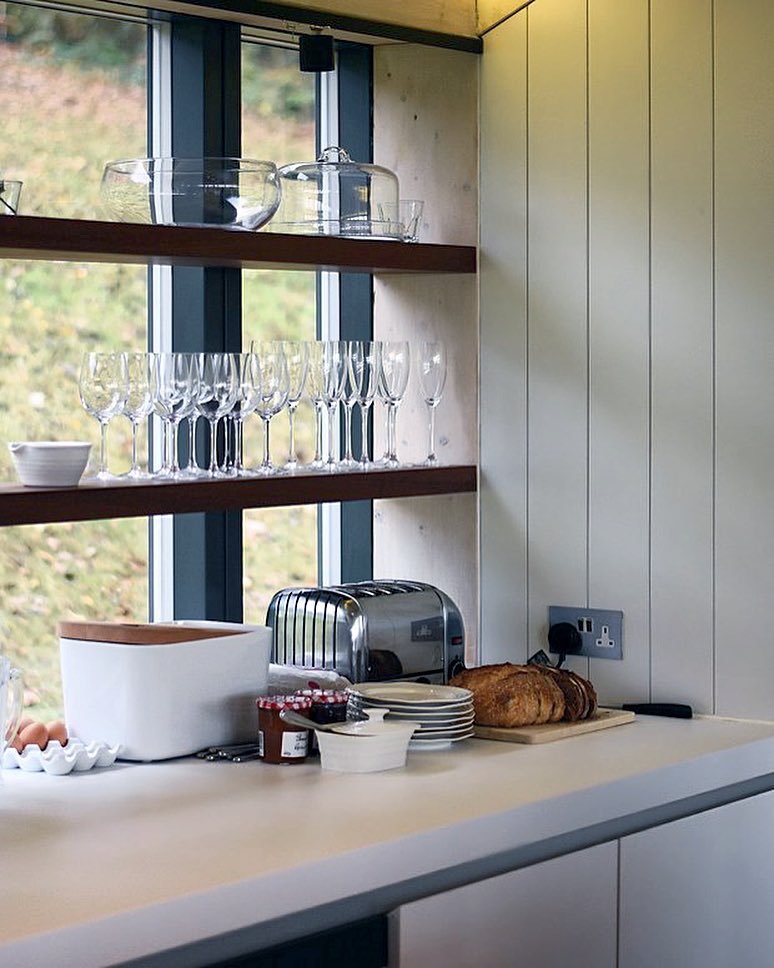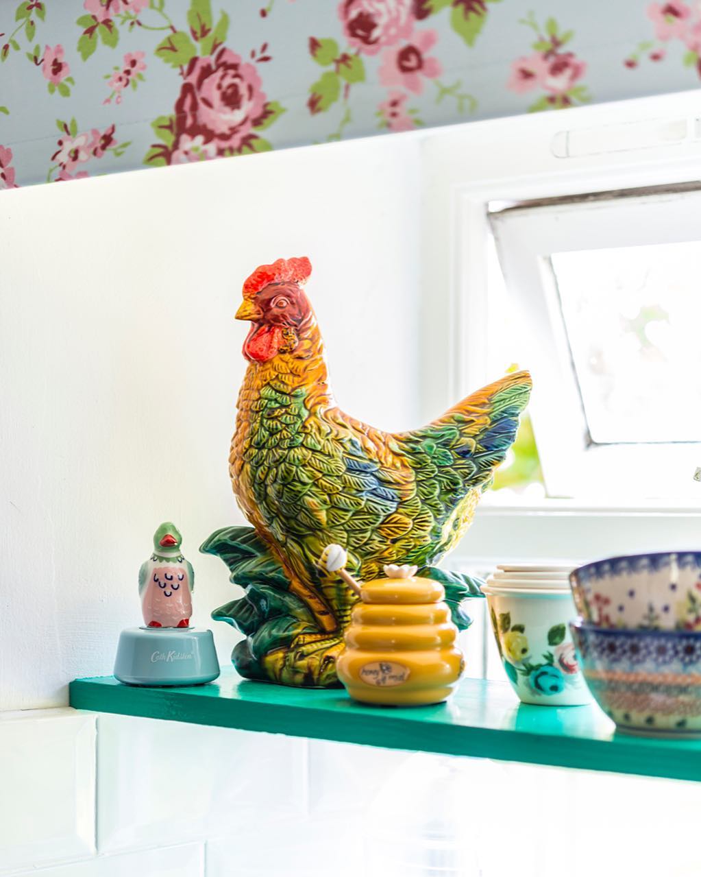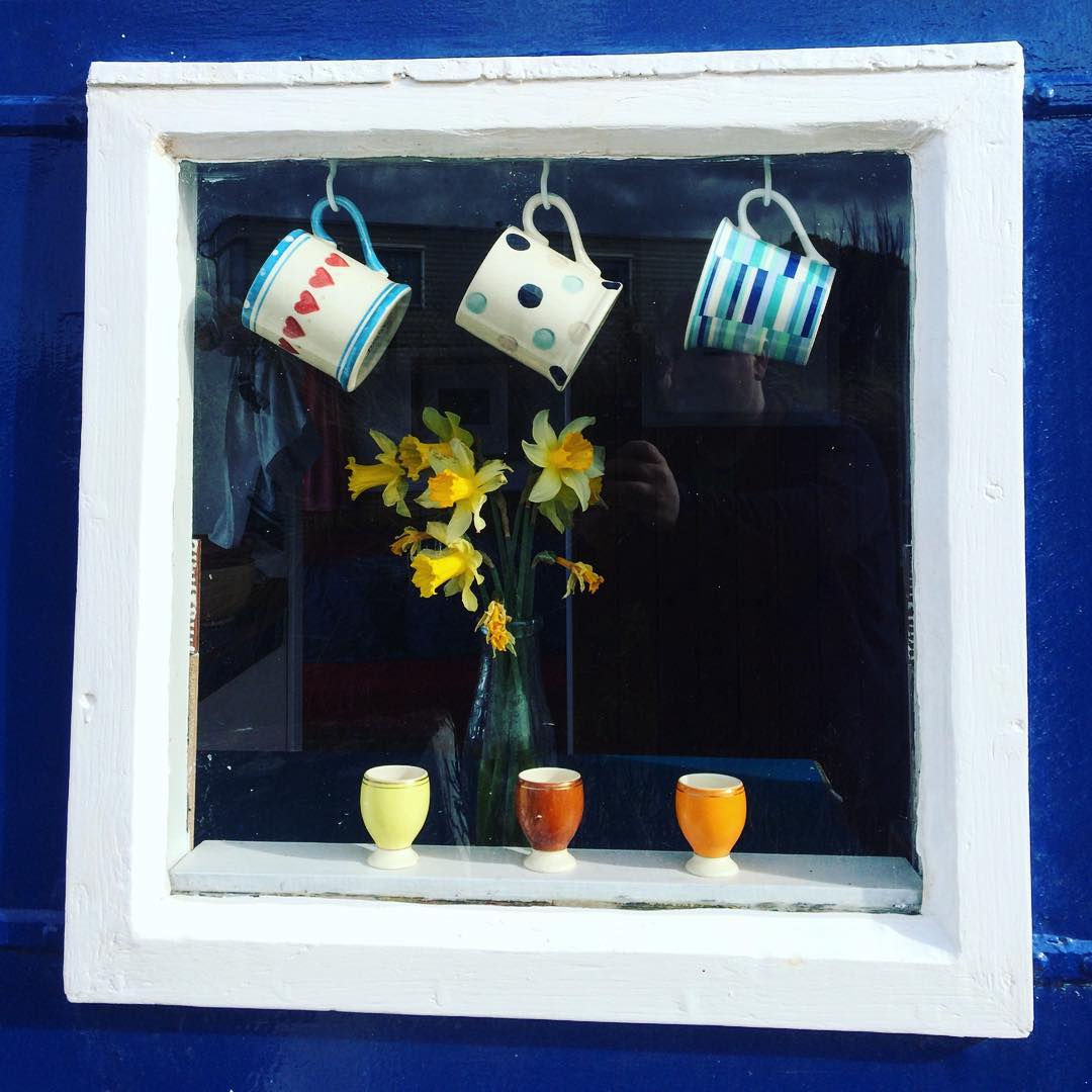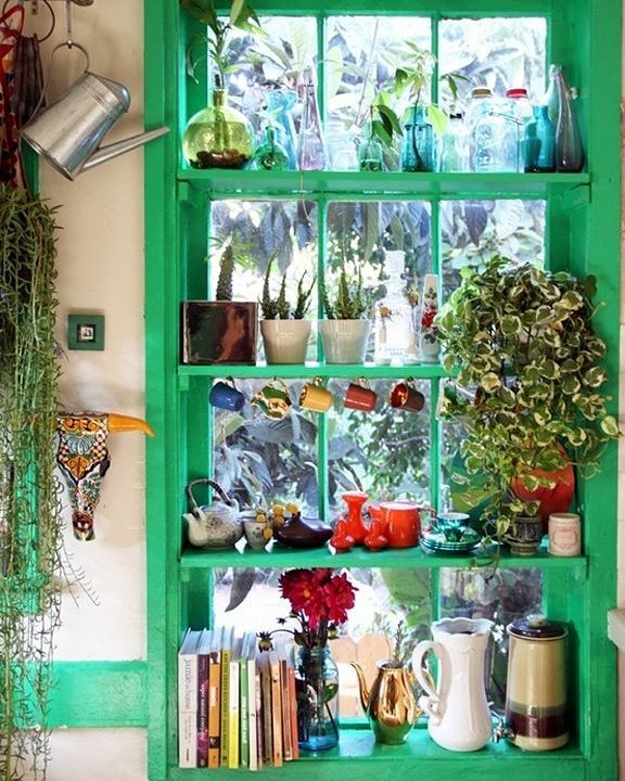 Впрочем, хранить в оконном проеме можно не только мини-коллекцию чашек, но и любую другую кухонную утварь.