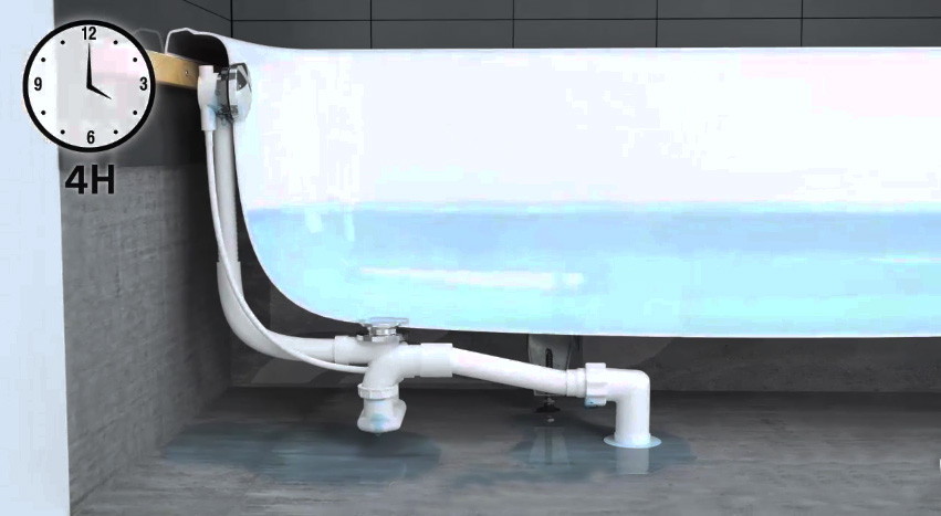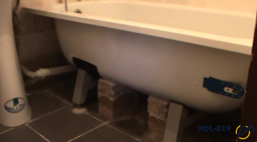 Учтите, когда мы поднимаем ванну над уровнем пола с помощью каркаса, ей достаточно трудно придать уклон. Поэтому этого способ подходит в случаях, когда дно емкости имеет естественный уклон в сторону сливного отверстия, а вода утекает хорошо.