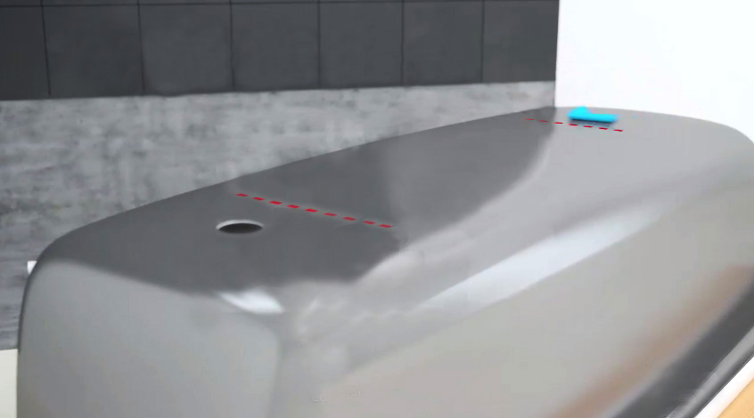 Шаг 6. Замерьте расстояние от ножек до бортиков, оно нужно для разметки расположения боковых упоров ванны.