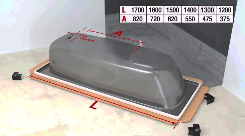 - Стальные ванны поднимаются посредством обустройства цементной стяжки именно на месте нахождения купели. Для того чтобы соблюсти уклон, достаточно под задние ножки подложить обычный швеллер;