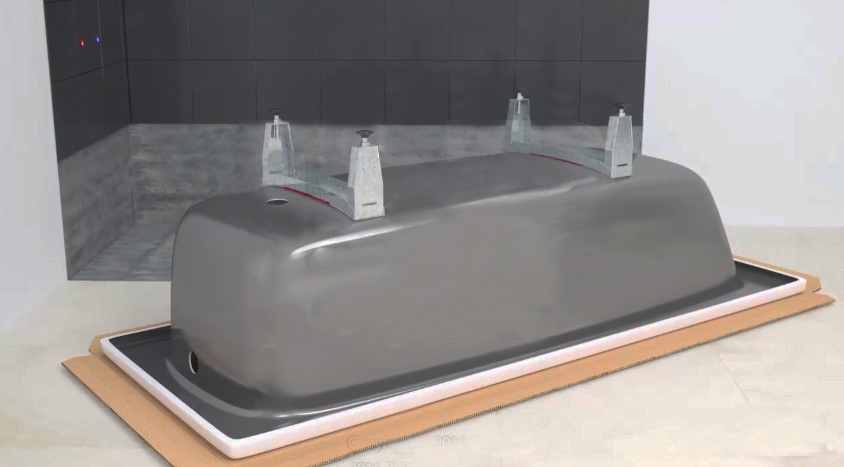 Если вы поднимите ванну из акрила на ножках, под нагрузкой она может деформироваться или даже лопнуть. Чтобы равномерно распределить нагрузку и увеличить площадь опор, тонкостенные купели устанавливают на каркас.