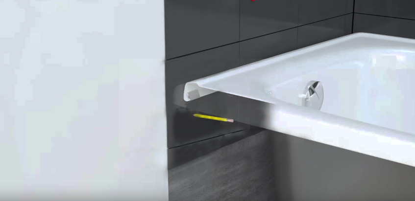 - Акриловые ванны просто приподнимаются посредством уголков, вмонтированных в стену. Толщины металла не менее 20 мм вполне достаточно для выдерживания веса купели с водой и моющимся человеком, уклон в ваннах зачастую отливается по форме;