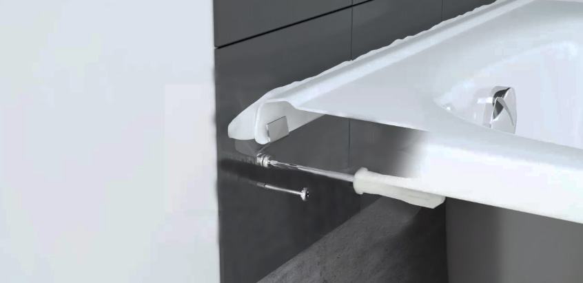 Помните, что показатели адгезии клея для плитки к лицевым поверхностям намного ниже, чем к рабочим. Перед дополнительной фиксацией положения ножек на поверхности плитки клеем их следует тщательно очистить от грязи, пыли и жира. Если крепления не будут видны, то рекомендуется в нескольких местах с поверхности снять глазурь, сделать это можно болгаркой с алмазным диском или острожными ударами зубила. Никогда не спешите, треснувшая плитка создаст большие проблемы.