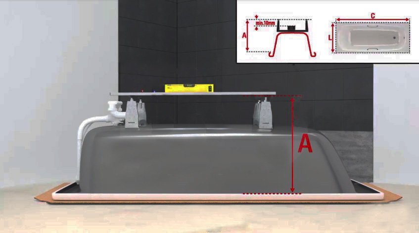 Практический совет. Для того чтобы не повредить плитку на полу и покрытие ванны, между ними нужно положить картонные или деревянные прокладки. Работы по монтажу намного легче и быстрее делать с помощником.