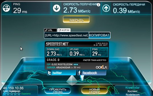 Также можно применять такие онлайн сервисы, как Speedtest.net. Они менее точные, но дают более-менее близкую к правде информацию.