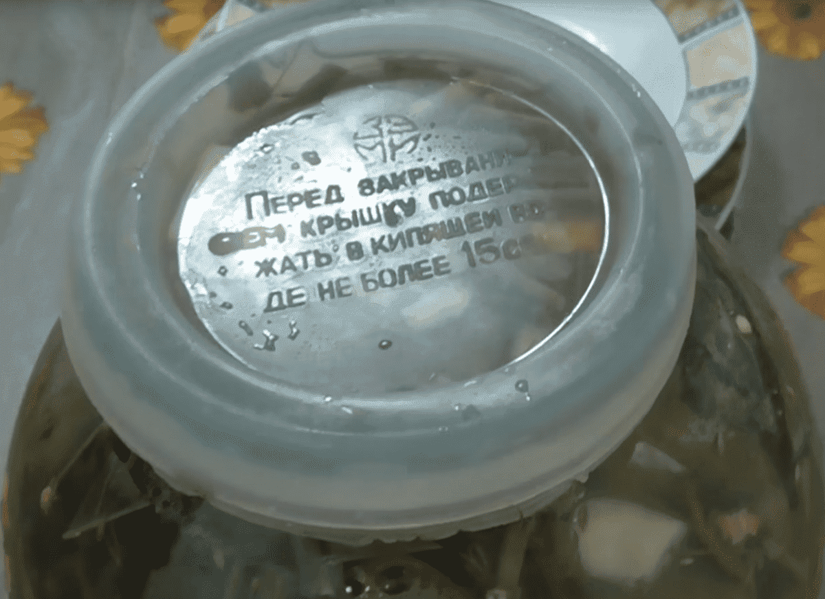 4. После чего в последний раз сливаем и кипятим рассол, заливаем его обратно в банку, закатываем ее и оставляем остывать под шубой в перевернутом виде.