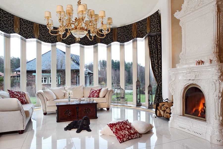 В классических интерьерах вы часто можете встретить камин. Кроме того, следует обратить внимание на его местоположение. Он должен находиться в центре гостиной или спальни, создавая связное целое с цветом стен и мебелью.