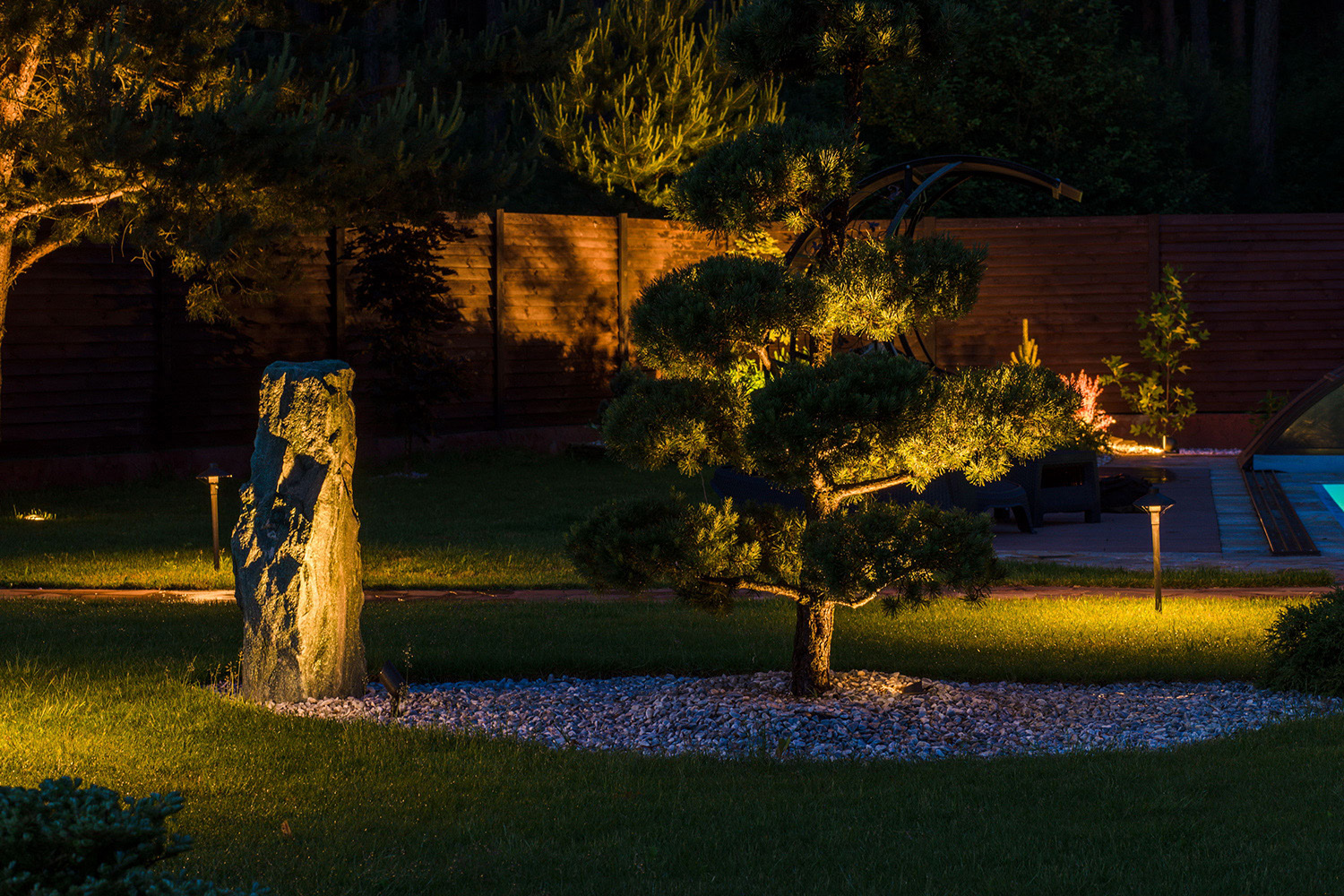 Один из основных плюсов грунтового освещения — это его функция по обеспечению безопасности. Освещенные дорожки и входные зоны предотвращают падения и случайные травмы, особенно в темное время суток. Также, хорошо освещенные участки отпугивают непрошенных гостей, создавая дополнительный уровень безопасности для вашего дома.
