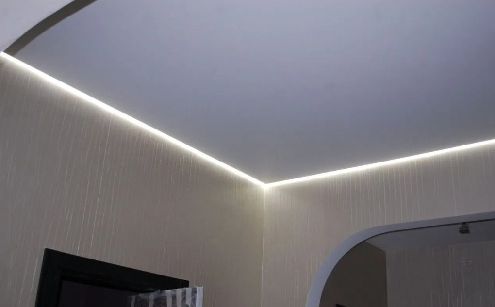 При установке потолочной подсветки светодиодными лампами, полосу закрывают плинтусами, или укладывают в специальные ниши. Делается это для комфорта глаз.