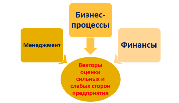 Осуществляя анализ внутренних факторов, можно применить и такую модель. Оценить векторы: