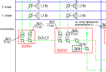 Подача программ вещания и сигналов, в системах оповещения здания внутри дома, до абонентских радиоточек предусматривается по медным проводам.