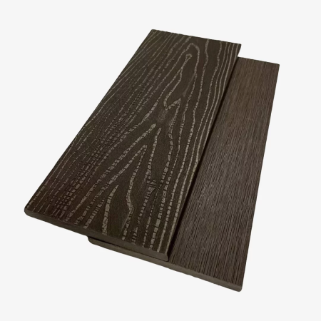 - Древесно-полимерный композит (ДПК). Этот материал состоит из древесной муки и полимеров. Он сочетает в себе внешний вид дерева и практичность пластика: не боится влаги, не гниет, не требует покраски и устойчив к насекомым. Поверхность ДПК не оставляет заноз и не скользит.