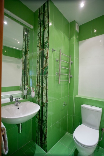 Дизайн интерьера туалета в зеленых тонах можно посмотреть на фото.