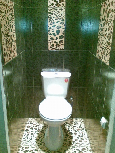 А при желании даже обычные отделочные материалы можно скомпоновать так, что получите шедевральный дизайн туалета.