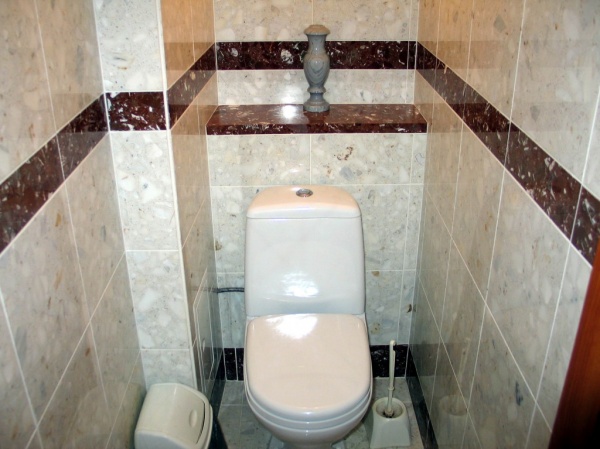 Так как туалет — помещение, требующее частой уборки с применением моющих средств, требования к отделочным материалам высокие. Они должны хорошо мыться, не бояться воды, не впитывать запахи, иметь длительный срок эксплуатации и длительное время не менять цвет. Таких материалов не так и много. Чаще всего это керамическая, мраморная плитка или керамогранит.