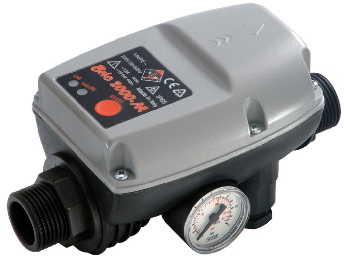 Вторая часть — это система напорной аэрации воды. Без системы аэрации удалить растворенное железо не возможно. Система аэрации состоит из специального компрессора AP-2 или LP-12, датчик потока Brio 2000 (пр-во Италия) или импульсный водосчетчик, , пластиковый баллон нужного размера, реле включения и отключения компрессора, клапан сброса лишнего воздуха.