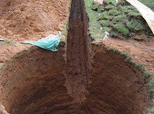 - Траншея. Углубление под дренажную траншею необходимо выполнять с учетом перепадов высоты. Главной задачей подготовленной системы канав является быстрый и беспрепятственный отток воды.