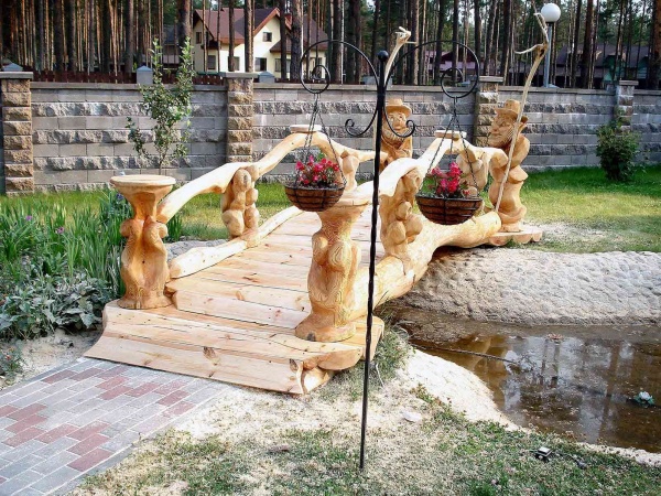 Обладание инженерными навыками позволяет применить в ландшафтном дизайне дачи изысканное украшение в виде аккуратного мостика.