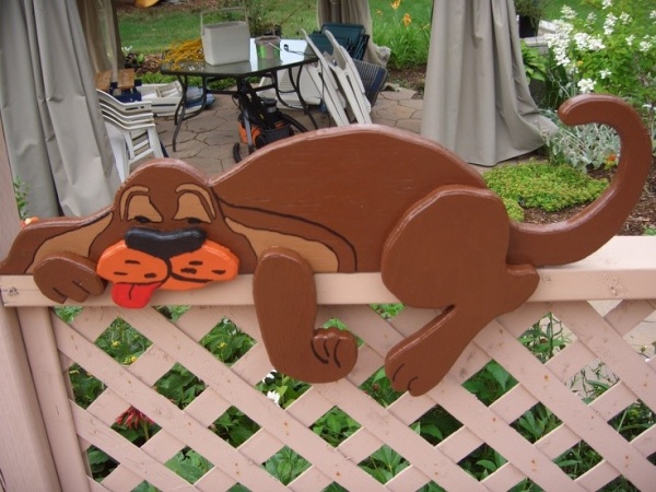 Создав эскизы и перенеся их на фанерный лист, понадобится мужская рука, чтобы вырезать фигуры лобзиком. Зато юмористический подход к созданию украшений обеспечит хорошее настроение не только владельцам дачи, но и проходящим мимо соседям. Привлечение детей к раскрашиванию фигурок позволит им с пользой провести летний отдых и с гордостью говорить о своем участии в оформлении дачи.