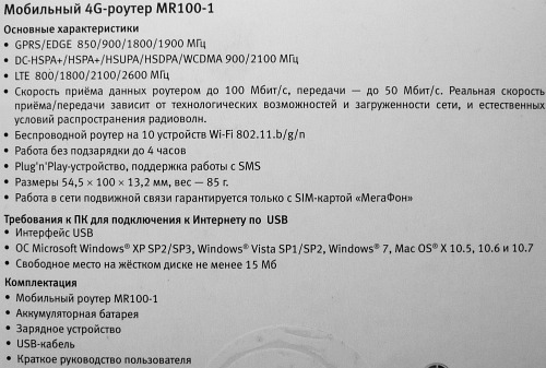 Характеристики Мегафон R100-1