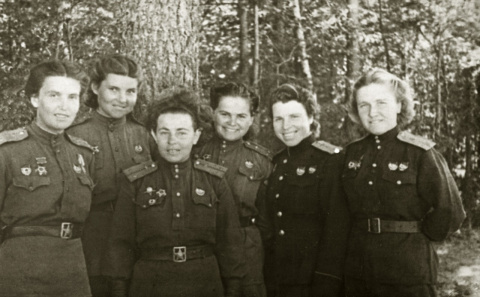 Герои Советского Союза: Таня Макарова, Вера Белик, Поля Гельман, Катя Рябова, Дина Никулина, Надя Попова. 1944 г
