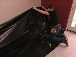 Пленку нужно натянуть так, чтобы ее края по стене были выше уровня пола. Если основание уже укрыто рубероидом, в укладке пленки нет необходимости.
