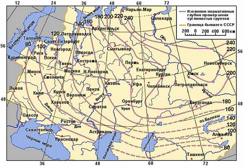 Важно учитывать, что показатели промерзания почвы в каждой климатической зоне разные. Узнать, какие нормы для конкретного региона, можно из специально разработанных карт. В них указывают точные данные по глубине промерзания грунтов.