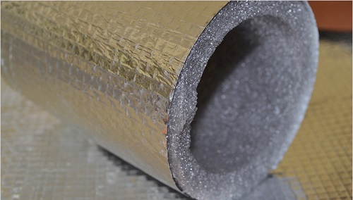 Распространенный современный теплоизолятор. Продается в виде «скорлупок». Кожух из вспененного полиэтилена одевают на трубу через боковой разрез. Швы должны немного смещаться, чтобы образовывался перехлест. Для герметизации их заклеивают специальным скотчем.