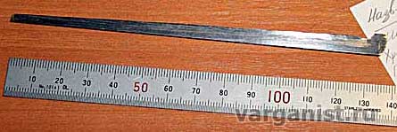 На наждаке отделил полоску (главное постоянно охлаждать, дабы не нарушить термообработку стали). Выровнял один край.