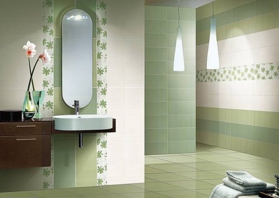 Современная ванная должна выглядеть свежо, интересно и стильно, поэтому традиционная схема облицовки с однотонным светлым кафелем и горизонтальным бордюром уже не актуальна. Сейчас многие отдают предпочтение ярким и насыщенным оттенкам в облицовке, контрастным сочетаниям, плитке с рельефной поверхностью и трехмерными изображениями. Стабильной популярностью пользуется плитка с имитацией камня, дерева, металла, кожи и других материалов, а также с искусственно состаренной поверхностью.