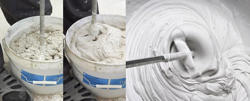 - Добавление воды: Постепенно добавлять воду, перемешивая раствор до получения необходимой консистенции.