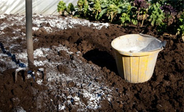 Выкопав лунку или канавку и уложив на дно немного опилок, полейте их любым удобрением, в составе которого есть азот и фосфор, можно также положить несколько крупинок мочевины.