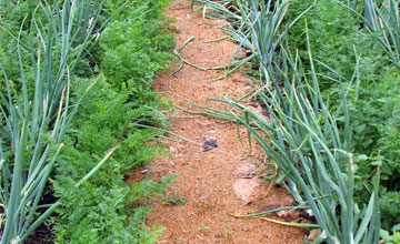 Во время дождя дорожки между грядками раскисают и превращаются в труднопроходимую кашу, поэтому многие огородники отсыпают их различными материалами.