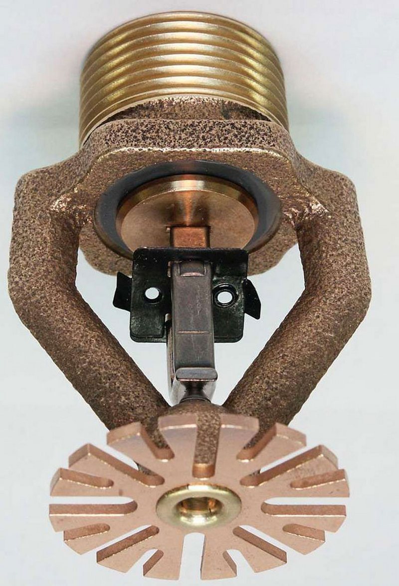 Когда один из распылителей начнет распылять воду, давление падает и включается резервный насос автономного водоснабжения, который является обязательной частью современных систем пожаротушения спринклерного типа. Устройство классического распылителя тоже подвергалось изменениям на протяжении десятилетий эксплуатации. До сих пор самым эффективным считается распылитель, где вода запирается клапаном, который удерживается в закрытом состоянии легкоплавкой внешней вставкой.Вставка расположена с внешней стороны, чтобы исключить охлаждающее действие воды из водовода, которое может повысить инерционность срабатывания системы.