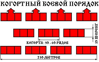 Со временем третью линию легиона стали использовать как резерв, решавший судьбу сражения. Но если полководец неправильно определял решающий момент боя, легион ждала гибель. Поэтому со временем римляне перешли к когортному строю легиона. Каждая когорта насчитывала 500-600 человек и с приданным конным отрядом, действуя отдельно, представляла собой легион в миниатюре.