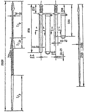 Кавалерийский меч в полтора раза длиннее пехотного. Мечи одоюдоострые, рукоятки делались из кости, дерева, металла.